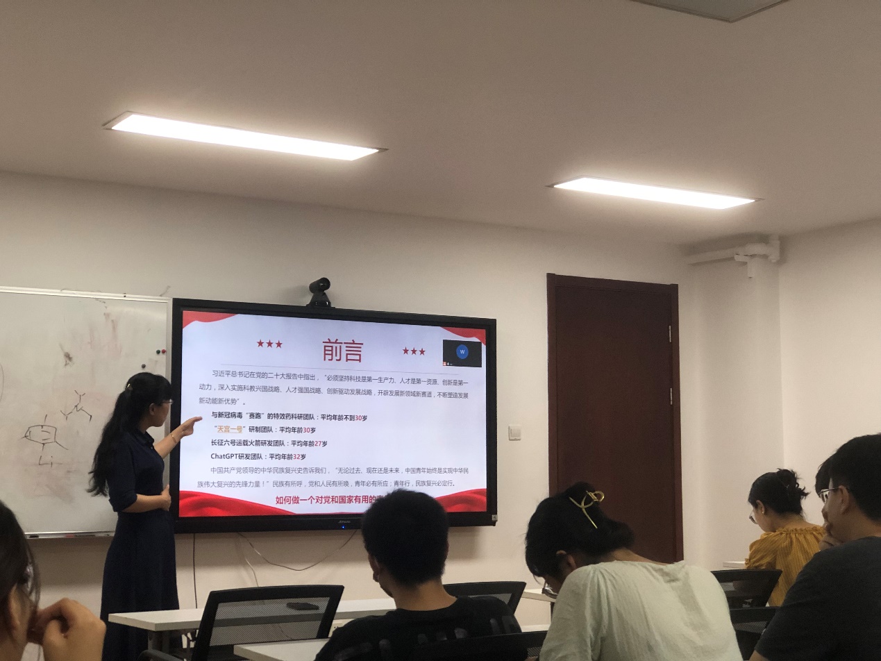 2023年6月5日晚,公司副经理、党委委员王媛媛以“以德为先,做有理想、有担当、能吃苦、肯奋斗的新时代好青年”为主题,为结对党支部2021级闵行校区博士研究生党支部及公司本学期新发展的党员上了一堂生动的党课。