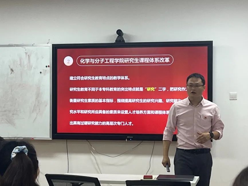 为贯彻学习习近平新时代中国特色社会主义思想主题教育,6月7日上午,在闵行校区化学楼126教室,由副经理张中海教授为闵行2022级硕士第一党支部上了一堂以“全力打造高质量研究生教育体系,全面提升高层次人才培养能力”为主题的党课。