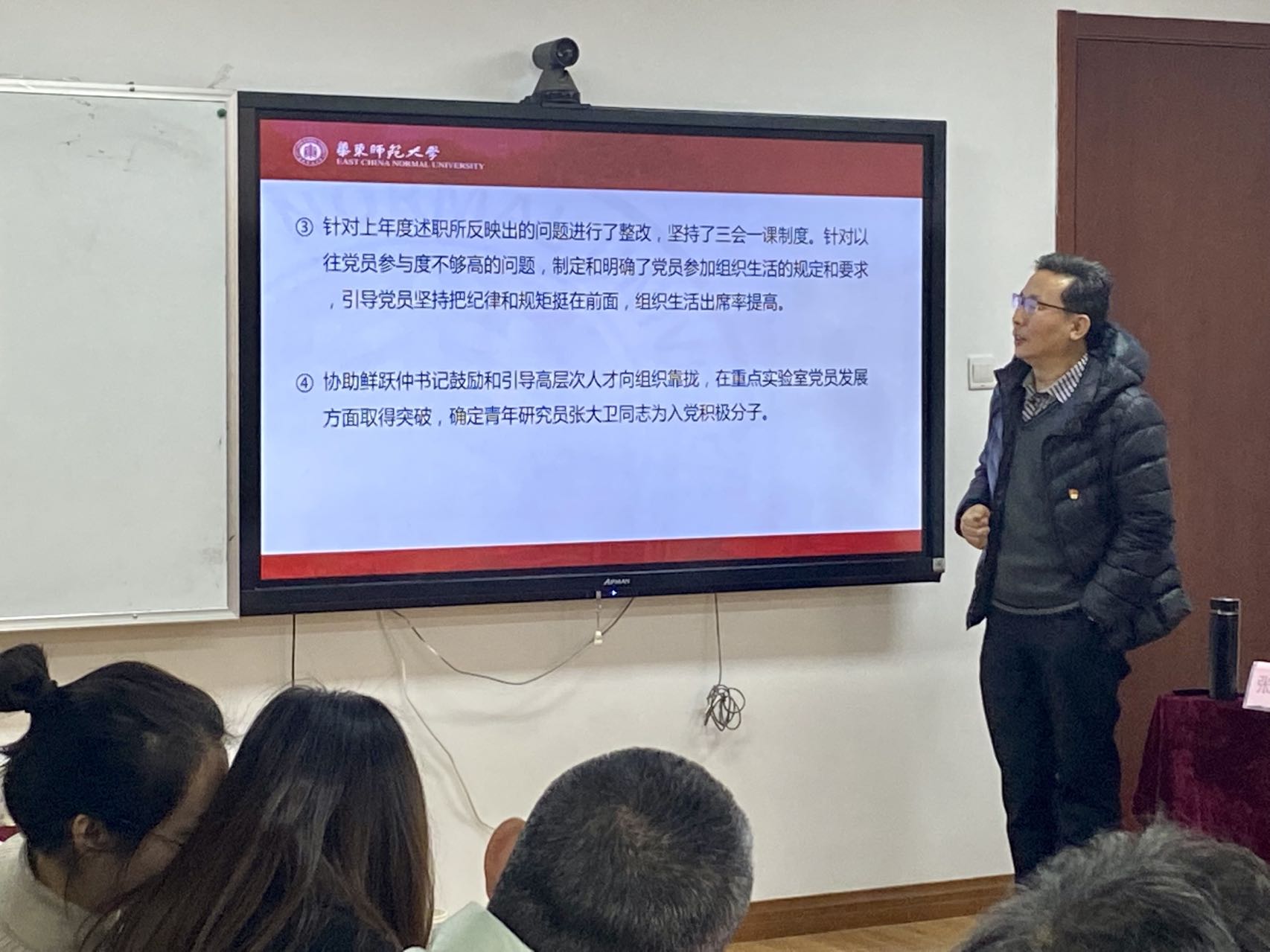 无机有机职工党支部书记孔爱国、高分子实验中心党支部书记黄琨、上海分子新药研究中心党支部书记张亮、分析物化海水党支部书记马士禹和上海绿色化学重点实验室党支部书记高恩庆在全面总结过去一年支部工作成果的基础上,深刻查摆了存在的问题并提出了下一步支部工作思路和想法。党委书记鲜跃仲、副书记王婷婷和党委委员谢美然、孔爱国、王媛媛分别对5位教工党支部书记抓党建工作情况进行了点评,肯定成绩、指出问题并对如何进一步抓实抓好党建工作提出中肯建议。鲜跃仲特别强调党建工作与公司公司事业发展深度融合的重要性,教师党支部要更有力地发挥党建凝心聚力作用,促进全院教师积极投身于新一轮团队建设、“十四五”规划实施以及双卓越方案推进等重要工作。