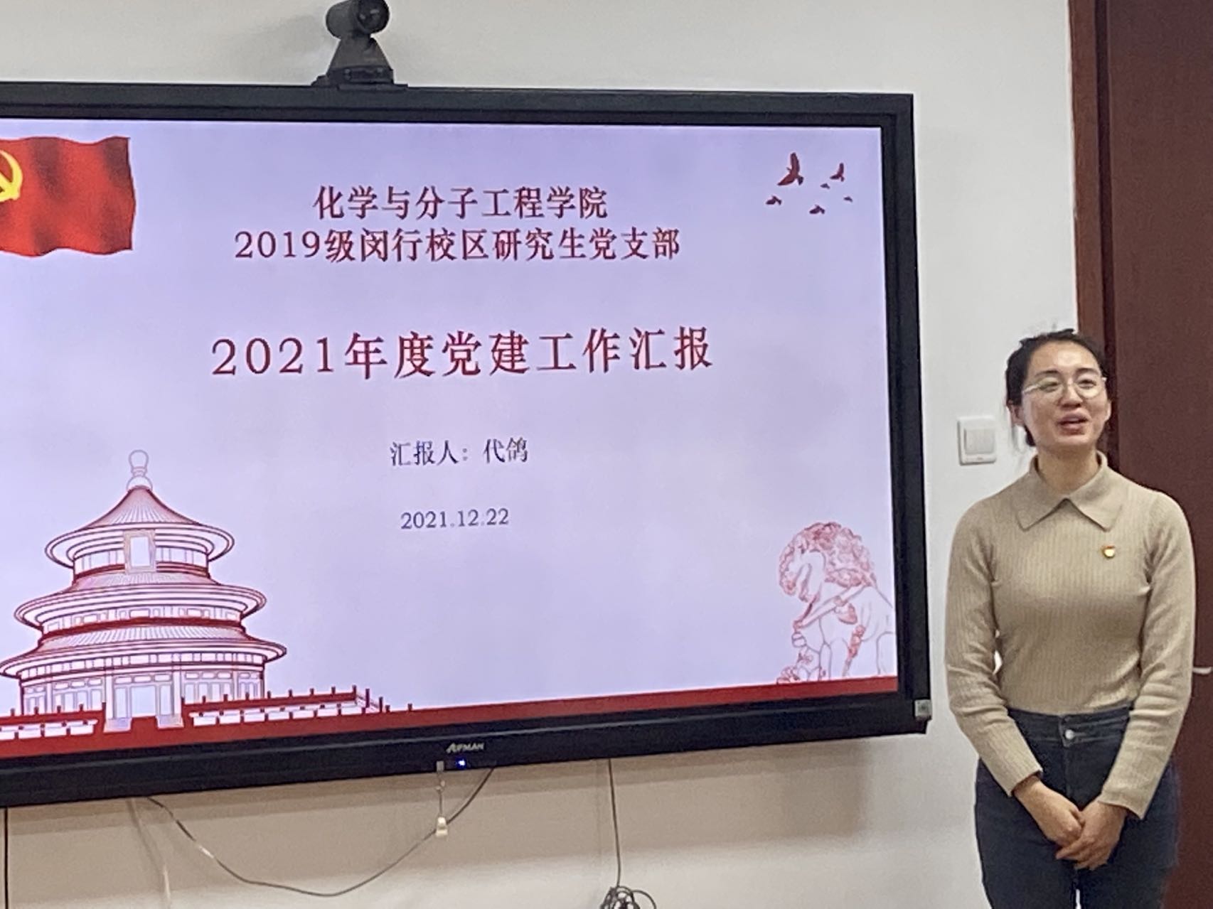 之后,普陀校区高年级研究生党支部书记楚萌恩、2019级博士研究生党支部书记乔雪龙、2020级研究生党支部书记杨嘉豪以及闵行校区2019级研究生党支部书记代鸽和2020级研究生党支部书记王玉柱分别从支部概况、工作开展情况以及支部工作中存在的不足与改进措施等方面进行了汇报,鲜跃仲、王婷婷、谢美然、马士禹和孔爱国老师分别对5位员工党支部书记抓党建工作情况进行了点评,就党课形式、支部特色、党员发展考核等方面提出了意见建议并鼓励员工党支部进一步通过扎实工作争先创优。