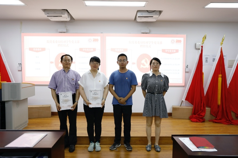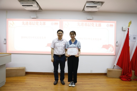 (党委书记鲜跃仲老师为先进基层党支部颁奖)
