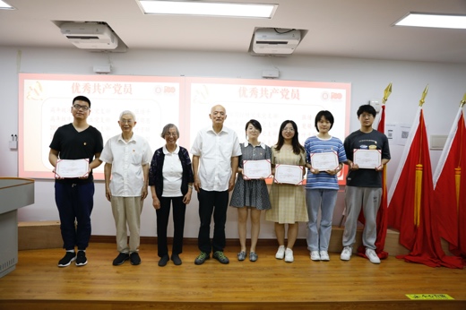 (退休老党员为优秀教师党员颁奖)