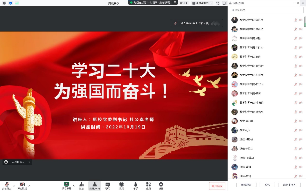 杜老师的主题报告内容详实、案例丰富、精彩纷呈,同学们倍感振奋,深受鼓舞。联合党校的同学通过线上线下结合的方式认真聆听了主题报告。