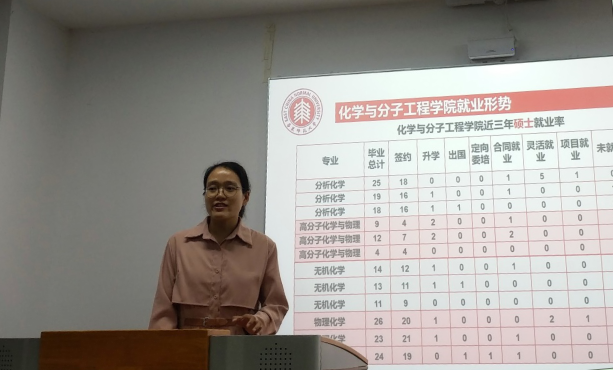 首先,王琳老师指出2021届或将迎来史上最难就业季。受疫情影响,本年度招聘市场萎缩,原有的产业被迫转型,餐饮、零售、外贸等行业遭受打击,此外,因求职方式的转变,个体求职竞争将更加激烈。不过,王老师也列举了化公司近三年的就业率,指出在过去的三年里,化公司就业工作成效显著,就业各项指标表现良好,因此,不论就业形势如何,抓住求职黄金期,积极开展求职工作,才是正确的应对之道。