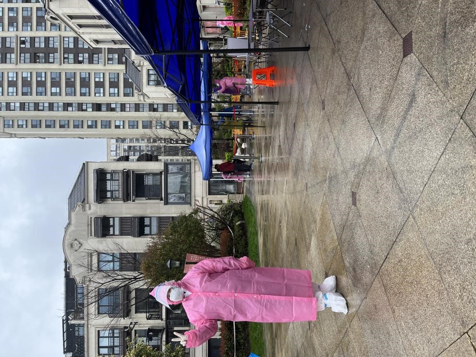 居委三次核酸检测中,都赶上大雨。面对恶劣的的环境和高强度的体力劳动,李晨晨却坚定地说:积极投入抗疫一线,为打赢抗疫阻击战贡献着自己的力量,正是在体现共产党人的初心使命。党的坚定领导是赢得斗争胜利的根本保证,是医生、护士、居委会干部、警察......是无数的抗疫民众组成的免疫屏障,阻挡了疾病的蔓延。每个中国人都在战斗,这才是真正的群体免疫。