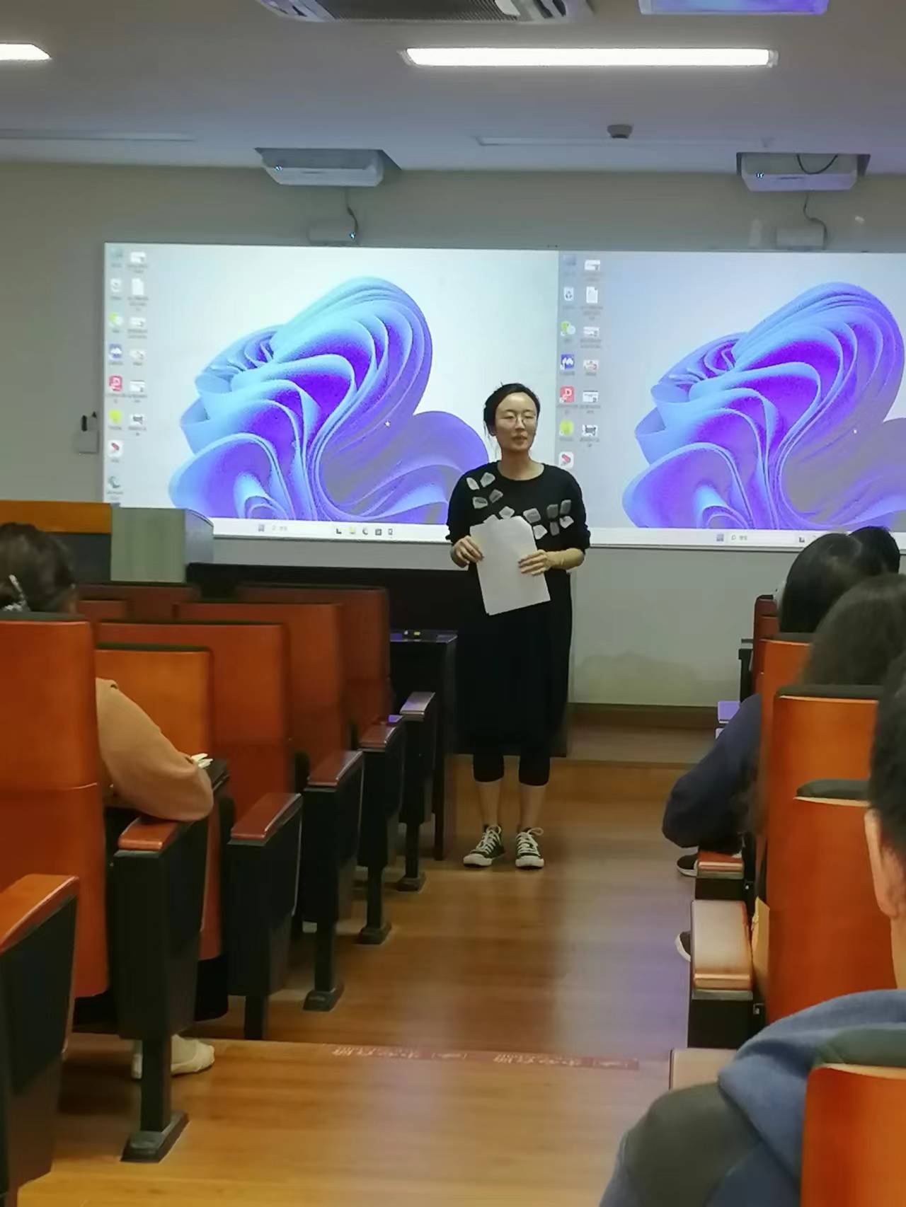 冯琪老师从师生共建的角度介绍了本次活动的目的:以员工成长为中心,聚焦学习科研与职业发展规划的迫切需求,通过“党员教师与育人育才”的专题报告及师生研讨,帮助同学们领悟“广大青年要肩负历史使命,立大志,明大德,成大才,担大任,在不懈奋斗中绽放青春之花”的内涵,帮助党员教师充分认识自身在新时代高等教育中的引领与支撑作用,激发党员教师积极融入员工,强化责任担当,充分发挥党支部战斗堡垒和党员先锋模范作用。