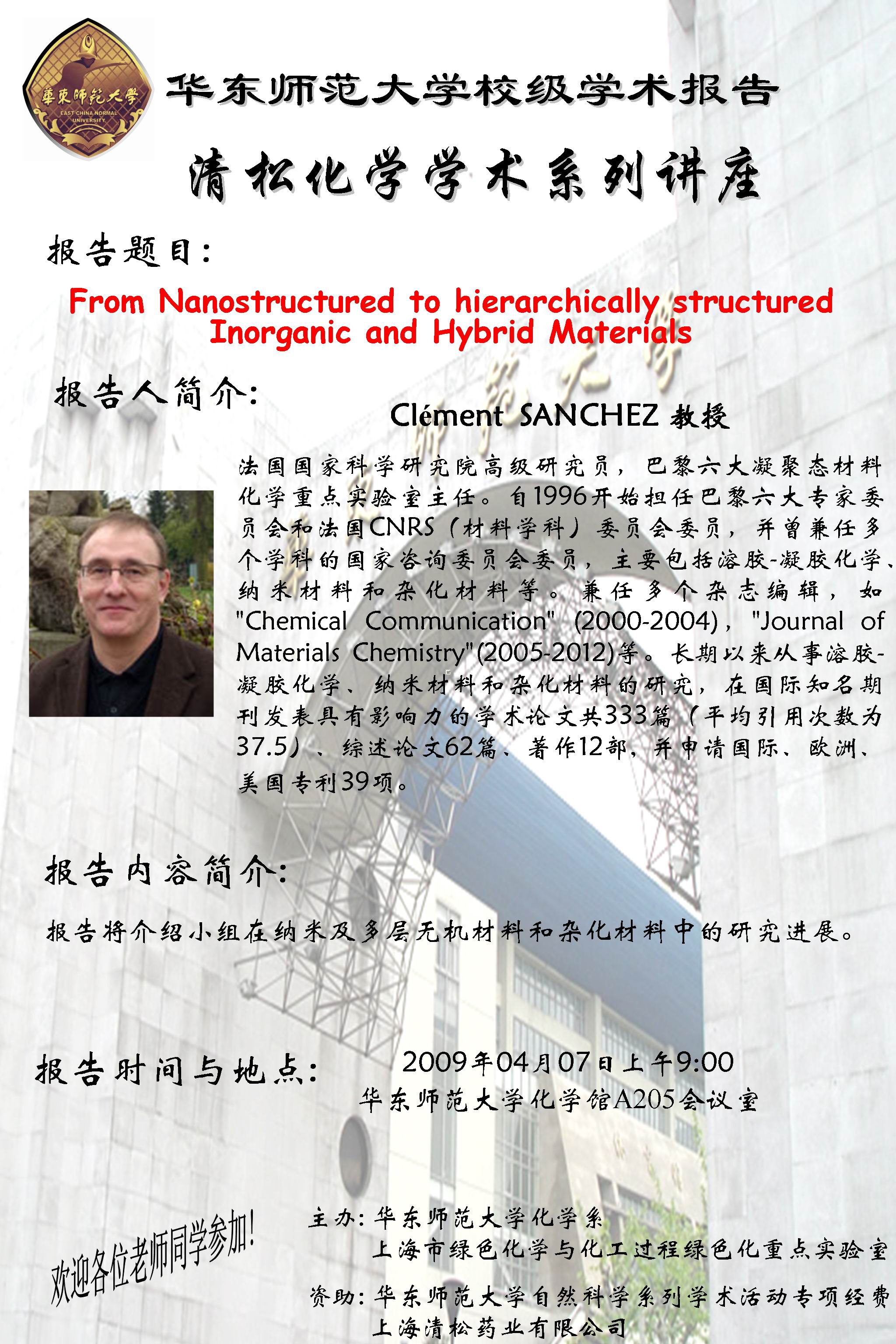 清松化学学术系列讲座_Clément__SANCHEZ_教授