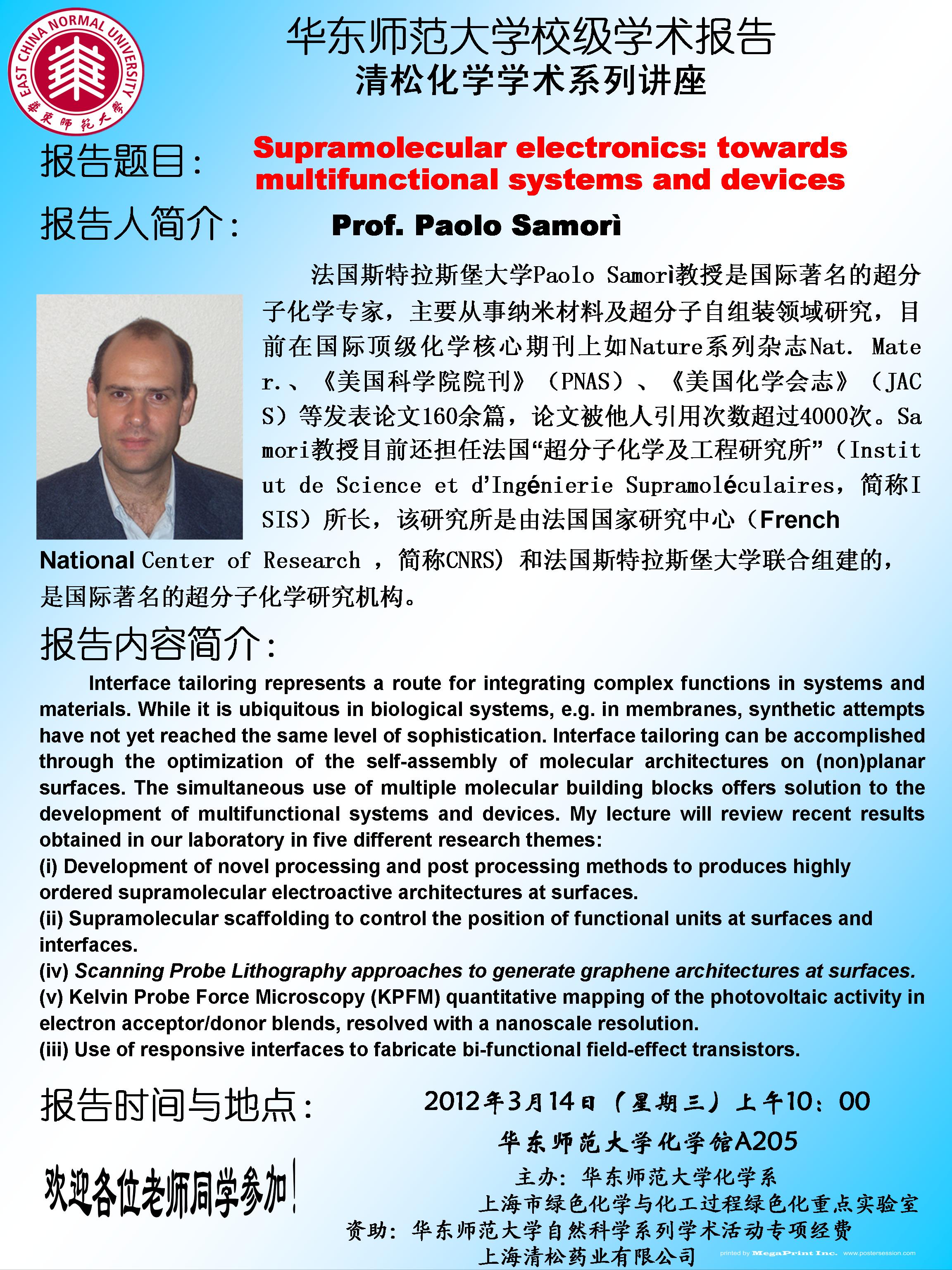 法国斯特拉斯堡大学Paolo Samorì教授的学术讲座