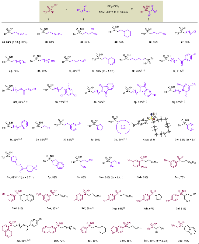 图2. 未活化烯烃与氟代砜亚胺的C-SuFEx链接。图片来源:Angew. Chem. Int. Ed.